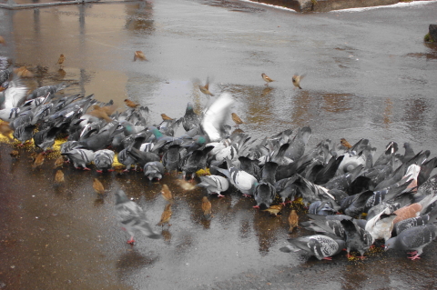 Птичка хлеб нашла...