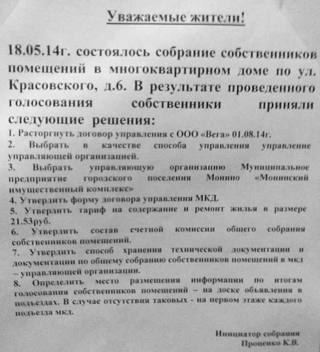 Да сто пудов ничего нет, ни протокола собрания, ни проекта договора от УК, ничего что должно быть... только доказать это нереально, если собственников 10%. Даже если кто-то воспротивится, администрация сама все нарисует задним числом, и скажет, что собств. на "собрании" не было.LX писал(а):возникает вопрос, почем тариф на содержание - 21,53 рубля... а почему не 11,53 или 31,53... Обоснование стоимости есть? услуги какие они предоставляют?