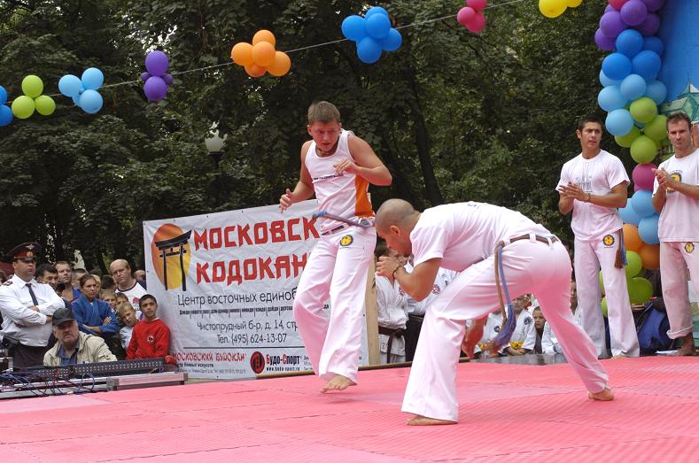 Ну а потом началось, собственно говоря, то, ради чего люди собрались. Феерические (по другому не назовёшь) представления возможностей школ боевых искусств. Начинали представители капоэйры. Перед ними пару слов сказал Иван Охлобыстин.